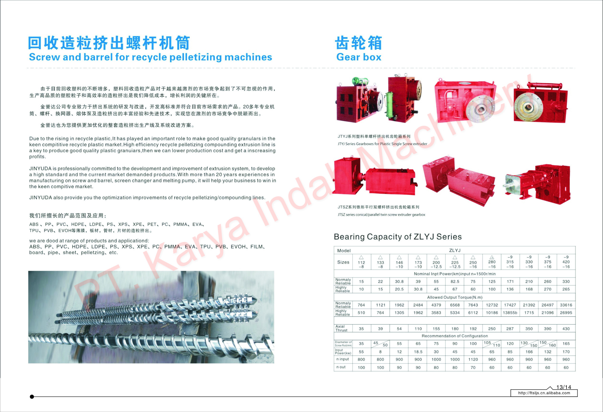 Specialist Plastic Injection & Extruder Screw, Barrel, Gearbox, and Etc.