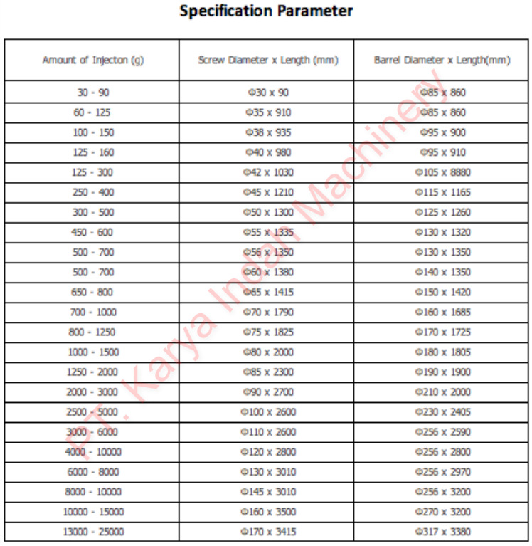 Clamping Force : 25-38000kN Mass of Injection Unit : 30-50000g Materials : 38 CrMoALA(JIS SACM645), 42 CrMo(JIS SCM440), 9 Cr18MoV, CW6M05Cr4V2, and SKD61 Alloy and Steel of High Quality (Iron, Tungsten, Nickel, and Molybdenum) Alloy Depth : 0.8-2.0mm Alloy Hardness : HRC55-65° Surface Roughness : Ra 0.4 Screw Straightness : 0.015mm Hardness after Hardening and Tempering : HB260-320° Nitrided Hardness : HV950-1100° Nitrided Depth : 0.5-0.7°mm Nitrided Brittleness : More than 2 stages Chromium-plating Depth : 0.05-0.10mm Chromium-plating Surface Hardness after Nitriding : More than or equal to 950HV |